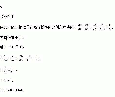 如图,在△ABC中,DE∥BC,,则EC= ______.