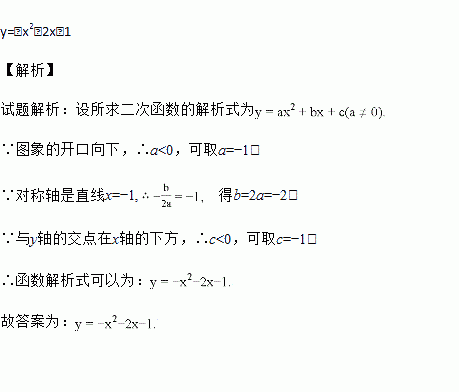 (题文)请写出一个二次函数的解析式,满足:图象的开口向下,对称轴是直线x=﹣1,且与y轴的交点在x轴的下方,那么这个二次函数的解析式可以为________ .
