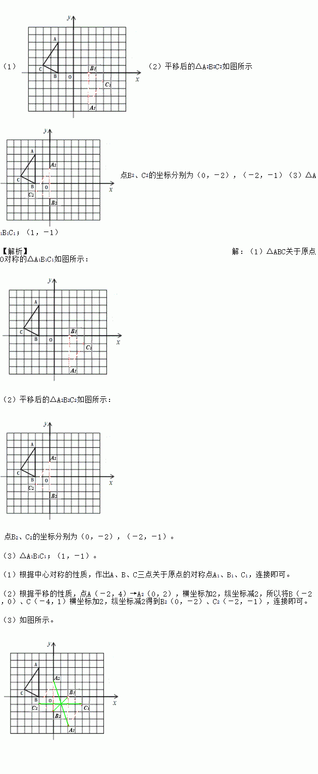 (1)画出△ABC关于原点O对称的△A1B1C1.