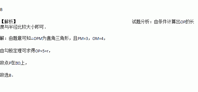 ⊙O的半径r="5" cm,圆心到直线l的距离OM="4" cm,在直线l上有一点P,且PM="3" cm,则点P( )
