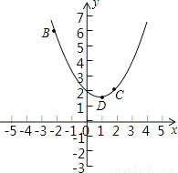 在平面直角坐标系xOy中,抛物线y=ax2+bx+2过B(﹣2,6),C(2,2)两点.
