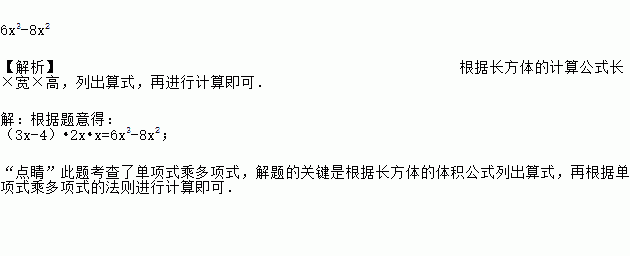 一个长方体的长、宽、高分别是3x-4,2x和x,它的体积等于________