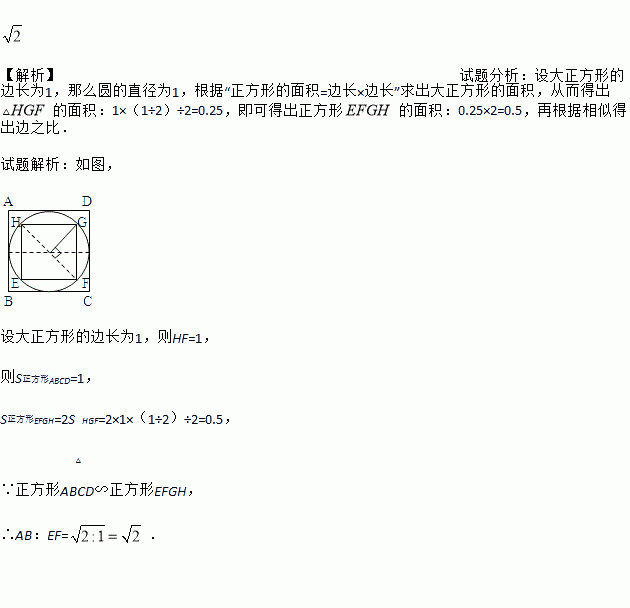 如图,正方形EFGH的外接圆⊙O是正方形ABCD的内切圆,试求AB:EF的值.