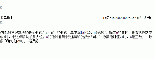 2015年10月29日,中共十八届五中全会公报决定,实施普遍二孩政策,推行了35年的城镇人口独生子女政策真正宣告终结,“未来中国人口不会突破15亿”是政策调整决策中的重要考量,未来中国人口不会突破”15亿用科学记数法表示为( )