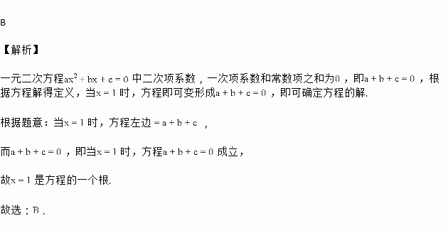 已知一元二次方程ax2+bx+c=0中二次项系数,一次项系数和常数项之和为0,那么方程必有一根为( )