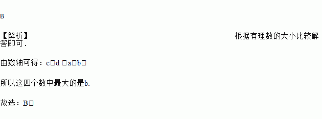 如图,点A,B,C,D在数轴上表示的数分别是a,b,c,d,则这四个数中最大的是( )