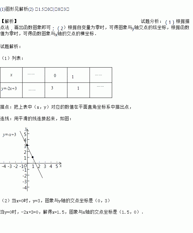 (2)求该图象与x轴y轴的交点坐标.