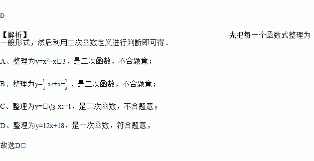 下列函数不属于二次函数的是( )