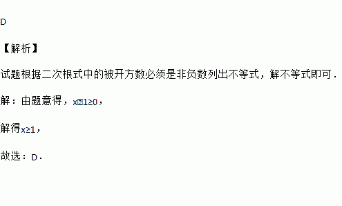 A. x<1 B. x≤1 C. x>1 D. x≥1