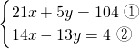把y=4代入②得:14x-13×4=4,