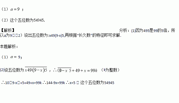 (2)在(1)中的三位数的首位和个位与十位之间加上和为9的两个数字,让其成为一个五位数,该五位数仍是“长久数”,求这个五位数;