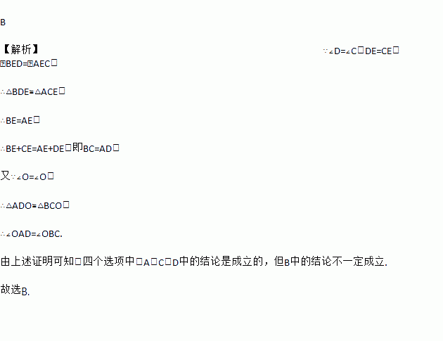 如图,∠C=∠D,DE=EC,则以下说法错误的是( )