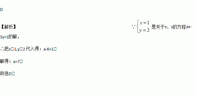 若是关于x,y的二元一次方程ax-3y=1的解,则a的值为( )