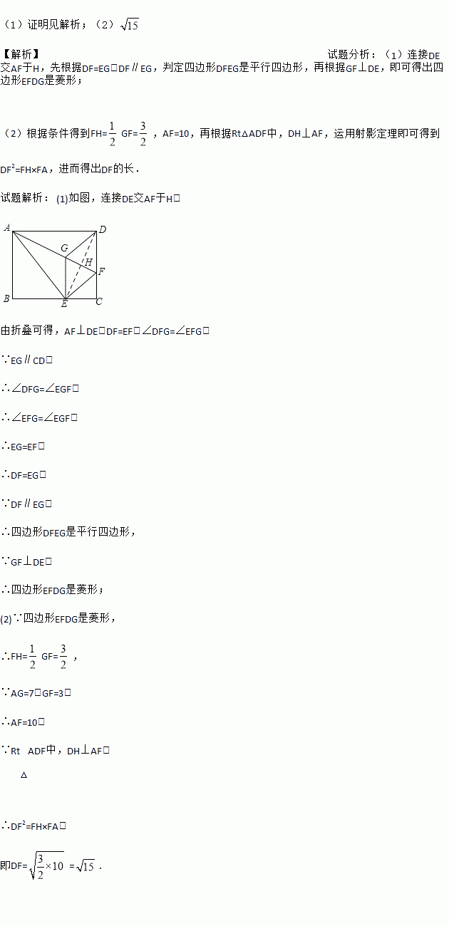 (2)若AG=7、GF=3,求DF的长.