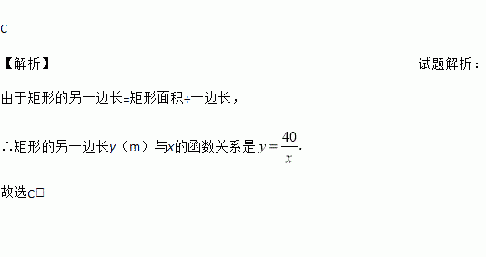 矩形面积是40m2,设它的一边长为x(m),则矩形的另一边长y(m)与x的函数关系是( )