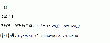 某同学把7×(□-3)错抄为7×□-3,抄错后算得答案为y,若正确答案为x,则x-y= .