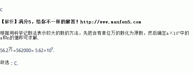德州市农村中小学校开工面积56.2万平方米,56.2万平方米用科学计数法表示正确的( )