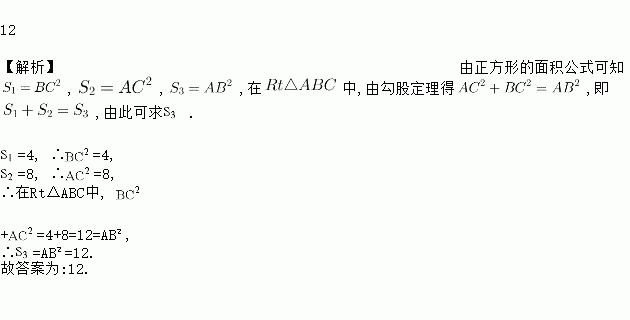 如图所示,以的三边向外作正方形,其面积分别为,且,则__________;