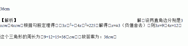 直角三角形的两条直角边长的比是3∶4,斜边的长为15cm,则这个三角形的周长为________.