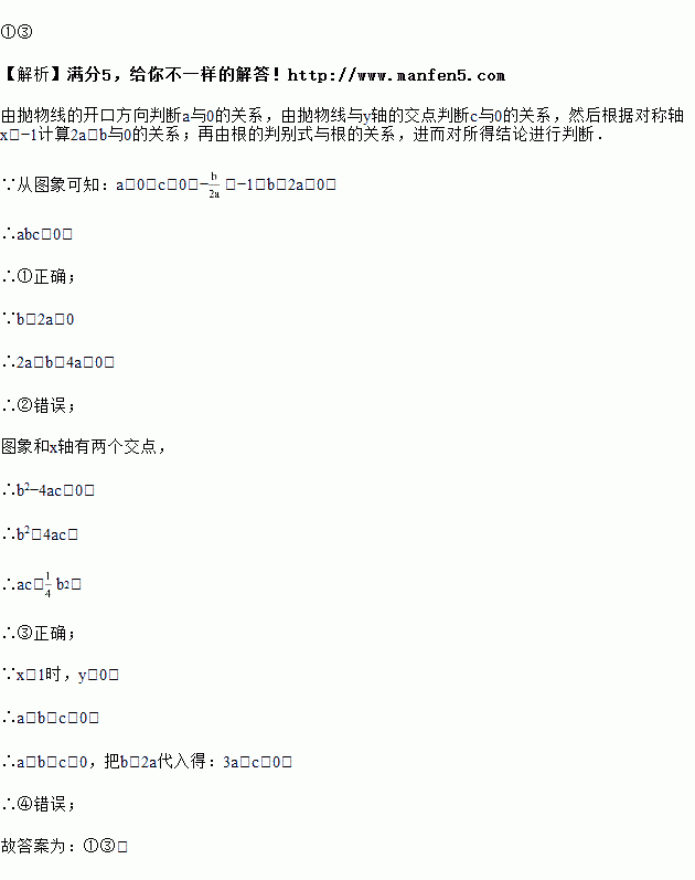 如图是二次函数y=ax2+bx+c过点A(﹣3,0),对称轴为x=﹣1.给出四个结论:①b2>4ac,②2a+b=0;③a﹣b+c=0;④5a<b.其中正确结论是( )