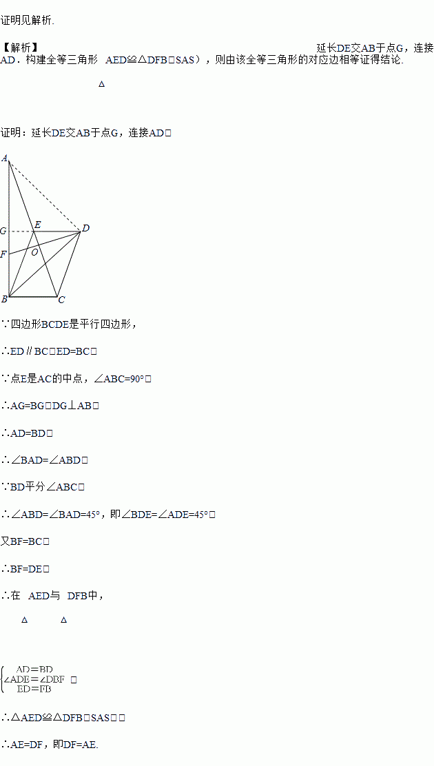 如图,⊿是直角三角形,且,四边形是平行四边形,为的中点,平分,点在上,且.
