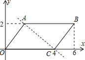 分析:根据平行四边形的性质,可得过其对角线的交点的直线可将该平行四边形分成面积相等的两部分;比较简单的是连接OB或AC,利用待定系数法即可求得直线AC与OB的解析式.