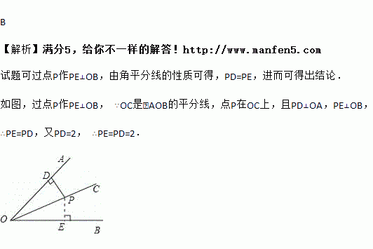 如图,OC是∠AOB的平分线,PD⊥DA于点D,PD=2,则P点到OB的距离是( )
