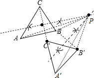 6.分析 根据旋转的性质PC=PC′,PB=PB′,则点P为CC′和BB′的垂直平分线的交点,这样可确定P点位置,连结BP和B′P,根据旋转的性质得∠A′PA和∠B′PB都等于旋转角,所以作∠A′PA=∠B′PB,再截取A′P=AP即可得到A′点的位置,从而得到A′B′C′.