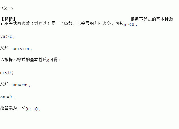 若a>c,则当m_________时,am<cm; 当m_________时,am=cm.