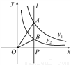 如图,直线l⊥x轴于点P,且与反比例函数y1= (x>0)及y2= (x>0)的图象分别交于点A,B,连接OA,OB,已知△OAB的面积为2,则k1-k2=________.