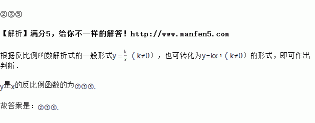 下列关系式:①;②;③;④;⑤,其中是的反比例函数的为________(只填序号)