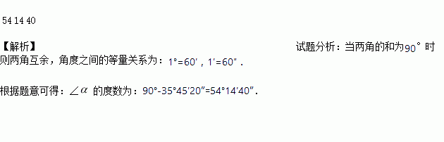 已知∠的余角是35°45′20″,则∠的度数是_______°_____′____″ .