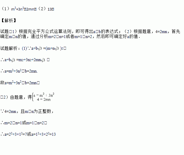 )2(其中a、b、m、n均为正整数)则有:a+b