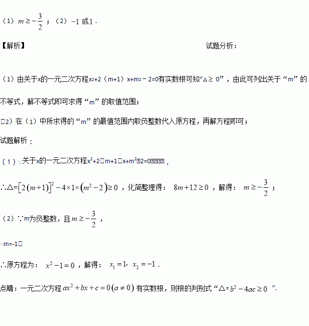 已知关于x的一元二次方程x2+2(m+1)x+m2﹣2=0.