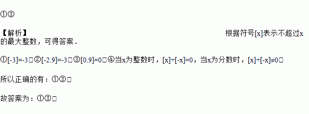 ①[﹣3]=﹣3,②[﹣2.9]=﹣2,③[0.9]=0,④[x]+[﹣x]=0.