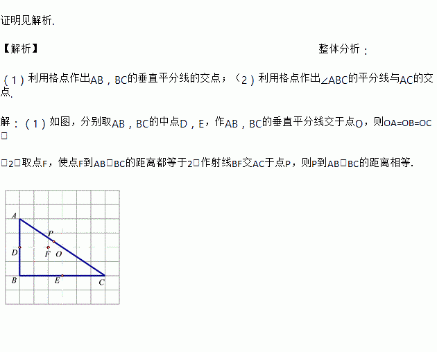 (1)在图中找一点O,使OA=OB=OC;