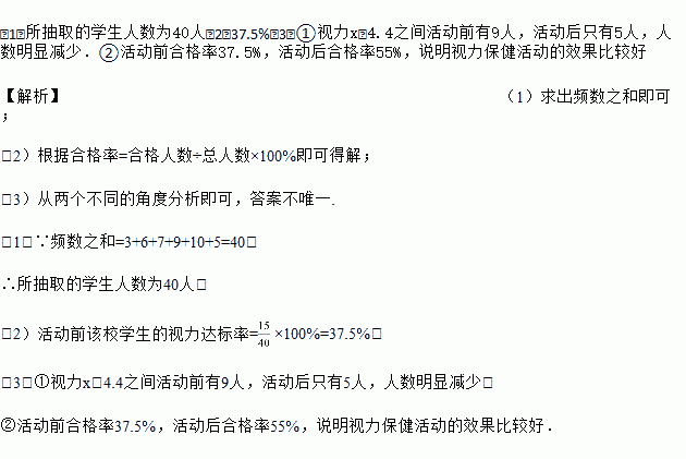 (2)若视力达到4.8及以上为达标,计算活动前该校学生的视力达标率;