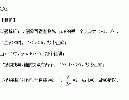 ①不等式ax2+bx+c>0的解集是-1<x<5;②a-b+c>0;③b2-4ac>0;④4a+b<0.