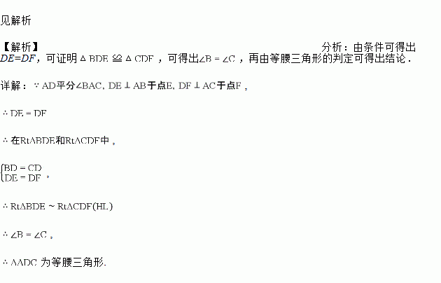 如图,在中,AD平分,点D是BC的中点,于点于点F.