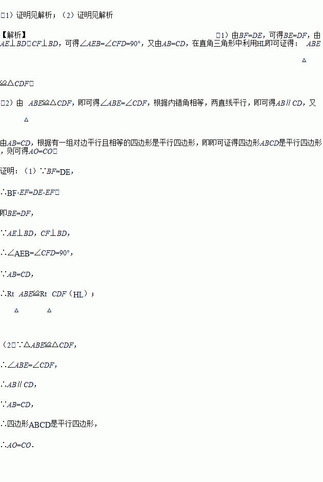 如图,在四边形ABCD中,AB=CD,BE=DF;AE⊥BD,CF⊥BD,垂足分别为E,F.