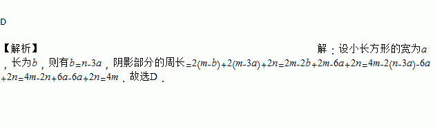 完全相同的6个小矩形如图所示放置,形成了一个长、宽分别为n、m的大矩形,则图中阴影部分的周长是 ( )