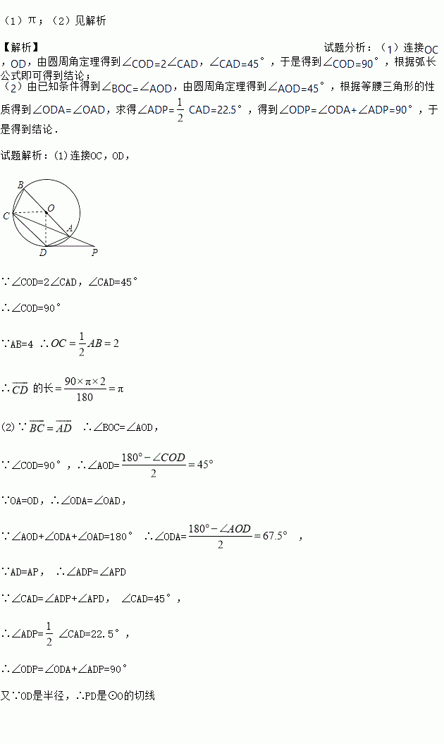 (2)若弧BC=弧AD,AD=AP. 求证:PD是⊙O的切线.