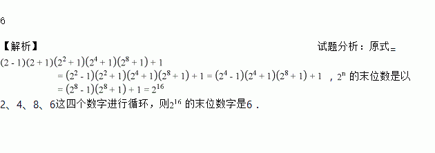 若A=(2+1)(22+1)(24+1)(28+1)+1,则A的末位数字是________.