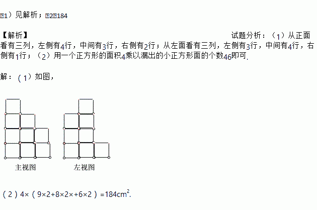(2)若小立方体的棱长为2cm,求该几何体的表面积。
