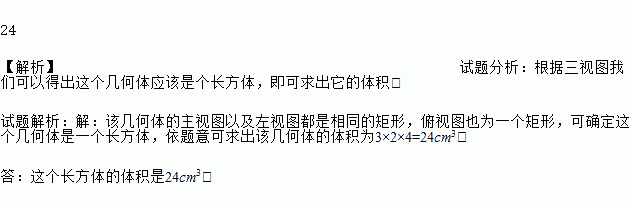 如图是一个长方体的三视图(单位:cm),根据图中数据计算这个长方体的体积