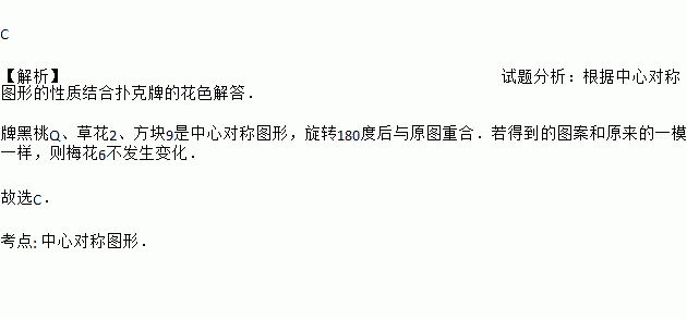 在一次游戏当中,小明将下面四张扑克牌中的三张旋转了180°,得到的图案和原来的一模一样,小芳看了后,很快知道没有旋转那张扑克牌是( )