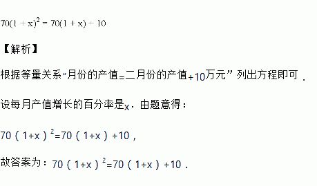 某公司一月份的产值为万元,二、三月份的平均增长率都为,三月份的产值比二月份产值多万元,则可列方程为________.