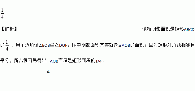 如图所示,EF过矩形ABCD对角线的交点O,且分别交AB,CD于点E,F,如果矩形的面积为1,那么阴影部分的面积是_____.