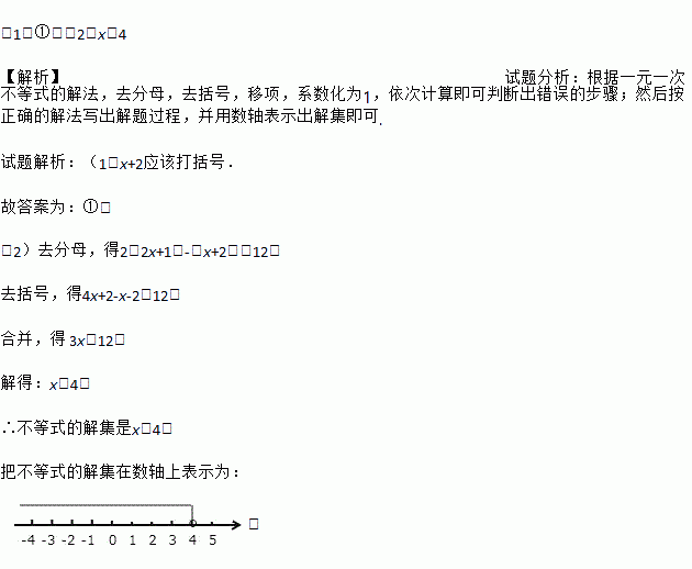 (2)改正错误的步骤,求出不等式的解,并画出数轴,在数轴上表示不等式的解集.