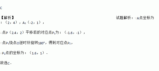 如图,在正方形网格中,△ABC经过平移后得到△A1B1C1,已知AC上一点P(2.4,2)平移后的对应点为P1,点P1绕点O逆时针旋转180°,得到对应点P2,则点P2的坐标为( )